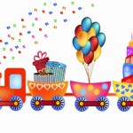 - Cartoon train with birthday card vector
