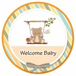 - Baby shower card with teddy bear in a swing