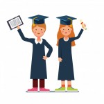 - Graduated students boy and girl with diploma