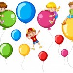 - Happy children and colorful balloons