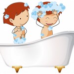 - Two kids in bathtub