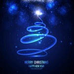 - Christmas tree with lights, blue background