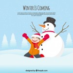 - Happy child background in a snowy landscape with snowman