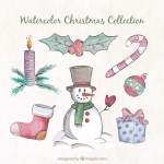 - Collection of christmas elements in watercolor effect
