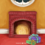 - Watercolor fireplace background with christmas gifts