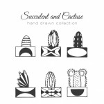- Hand drawn cactus with pot set