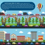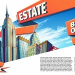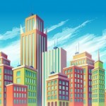 - Vector cartoon illustration, banner, urban background with modern big city buildings