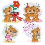- Set of vector clip art illustrations of brown teddy bear wishes you a happy birthday