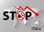 24. Stop Text with Coronavirus Icon on World Map