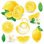 - Different lemons with leaves and flowers vector