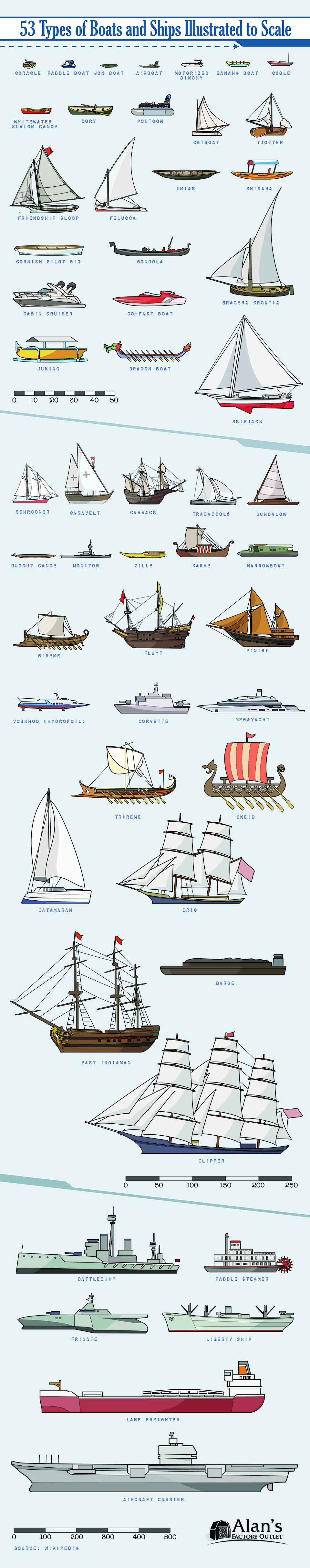 53 Types of Boats and Ships Illustrated to Scale