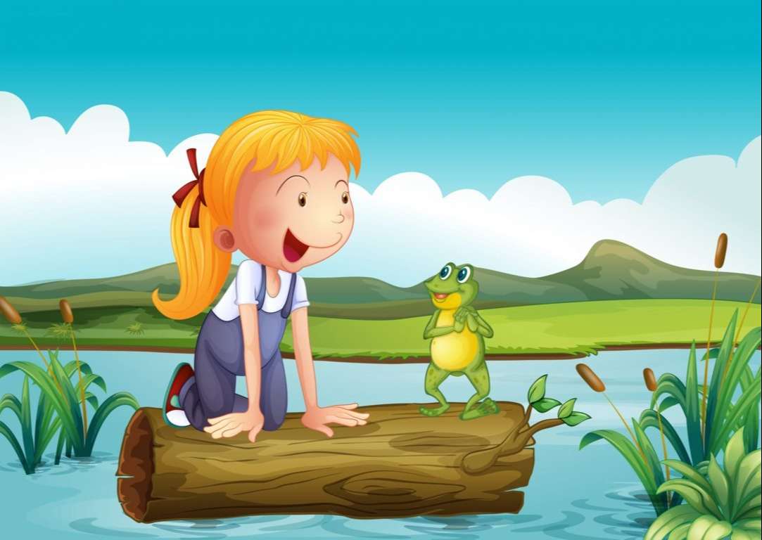 A girl with a frog in the river