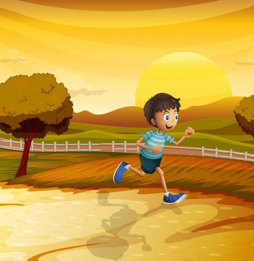 A view of the afternoon with a young boy running