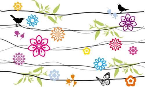 animal beak birdie body Decorations detailed floral plant sing singing song swirls swirly tail waving lines