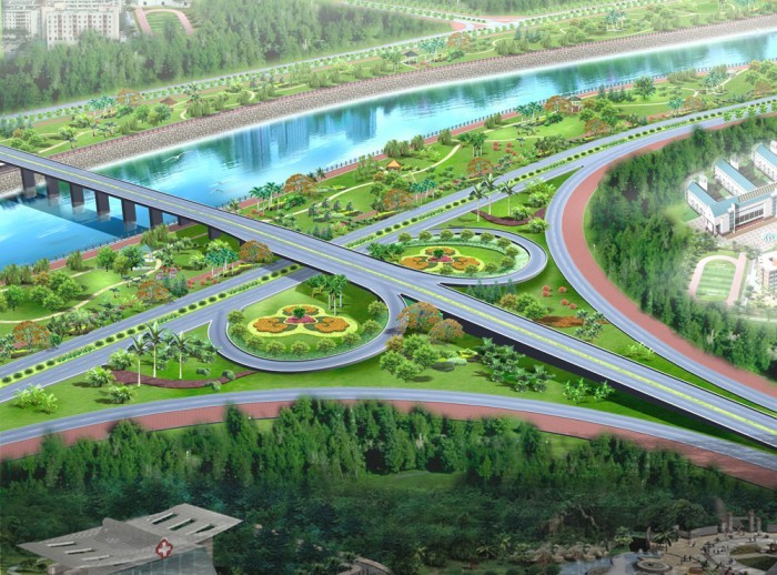 Aerial view of highway overpass picture material