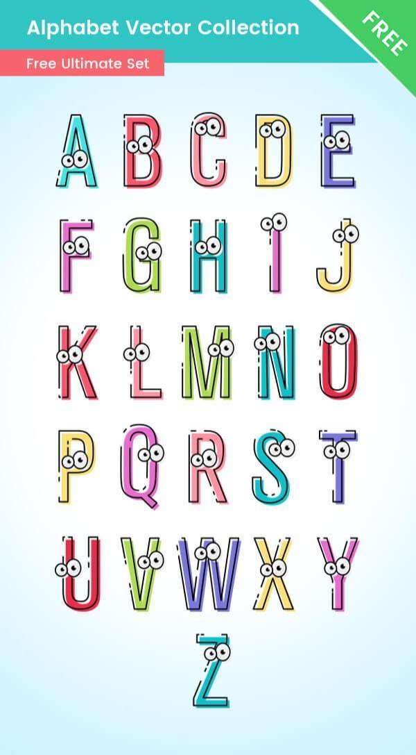 abcs alphabet Back to School Vectors Cartoon Character Sets cartoon characters characters Collection English flat Modern Outline vector characters