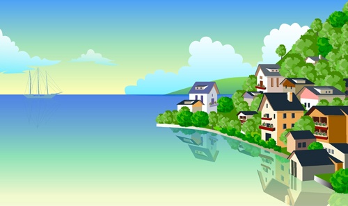 Beautiful cartoon landscapes vector set 05