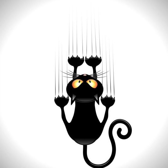 Black cartoon cat with claw trace vector 01