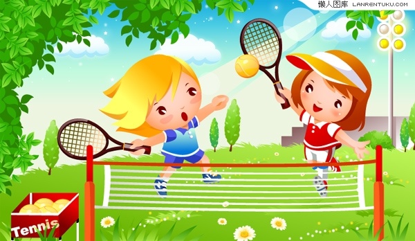 Children’s cartoon tennis vector material