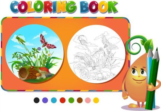 Coloring book insects with nature vector 03
