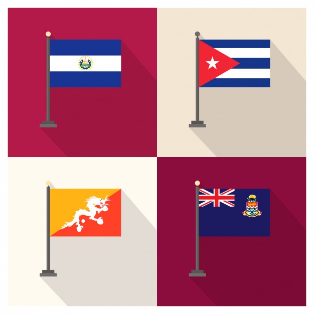 El Salvador Cuba Bhutan and Cayman Islands Flags