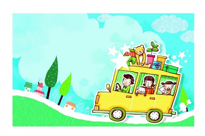car cartoon boy cartoon car cartoon girl cartoon illustrator of children children's comics Family traveling vector characters