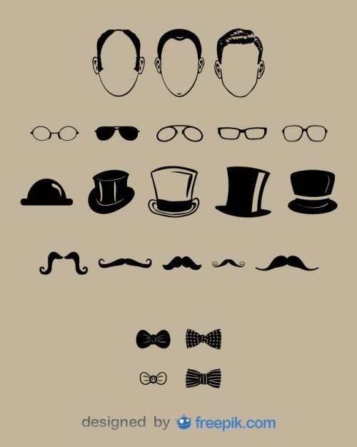 Gentlemen Face and Fashion Design Set Vector | Free Download