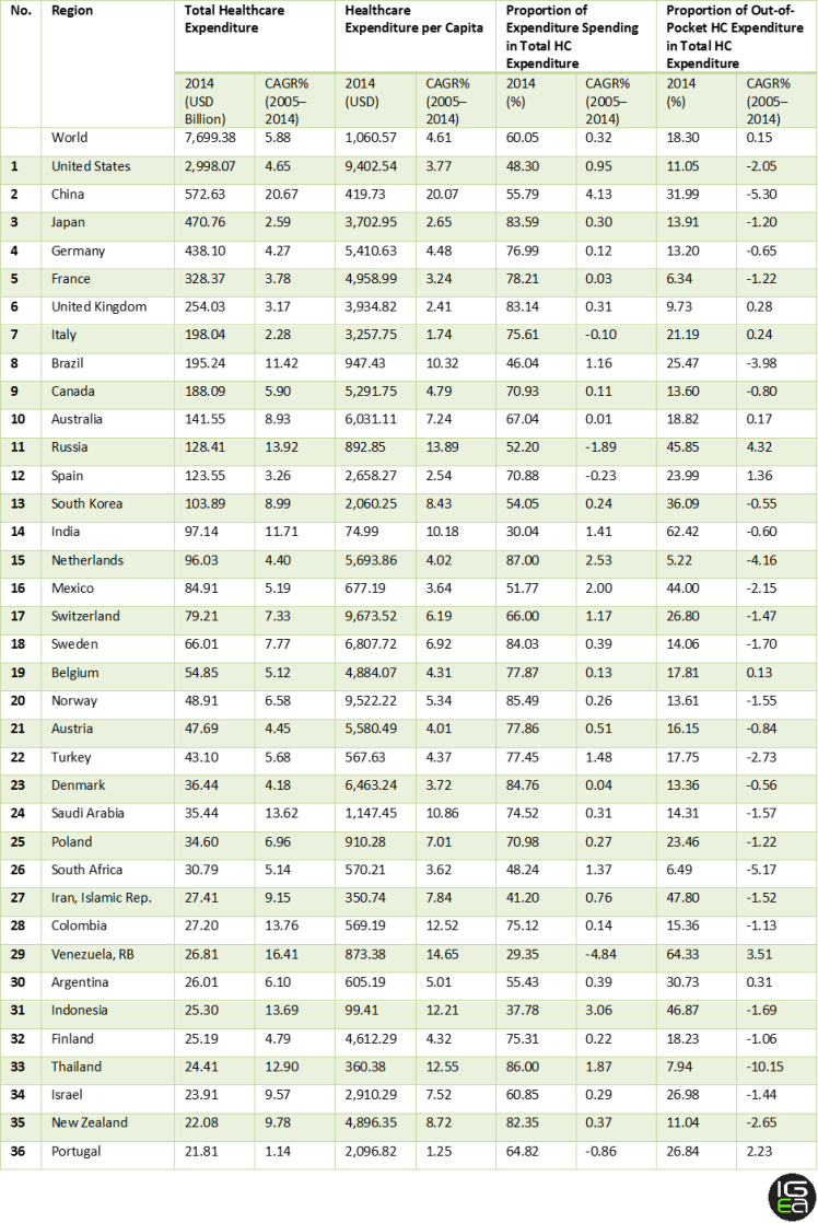 Brazil Canada China expenditure france Germany Healthcare india italy Japan per capita russia Spain United Kingdom United States