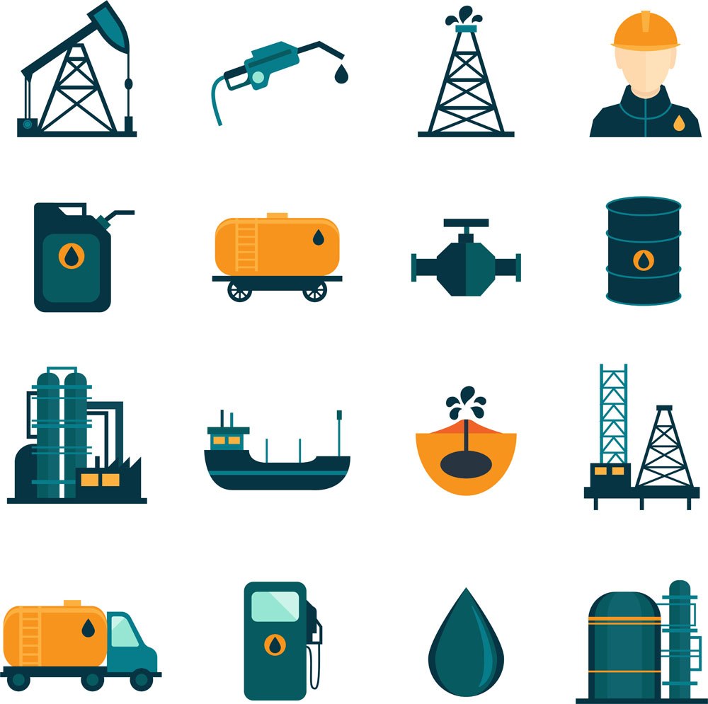 barrels Boats cylinder drilling gas stations icon industrial design industrial production oil refining ships tanker template water droplets workers