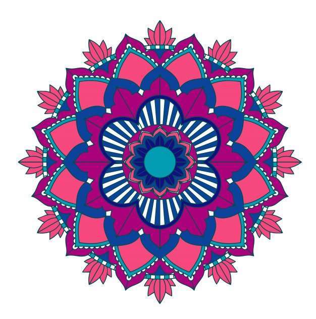 Flower Floral Circle Ornament Nature Blue Mandala Cartoon Pink Yoga India Arabic Patterns Religion Ethnic Round Natural Doodles Oriental Old
