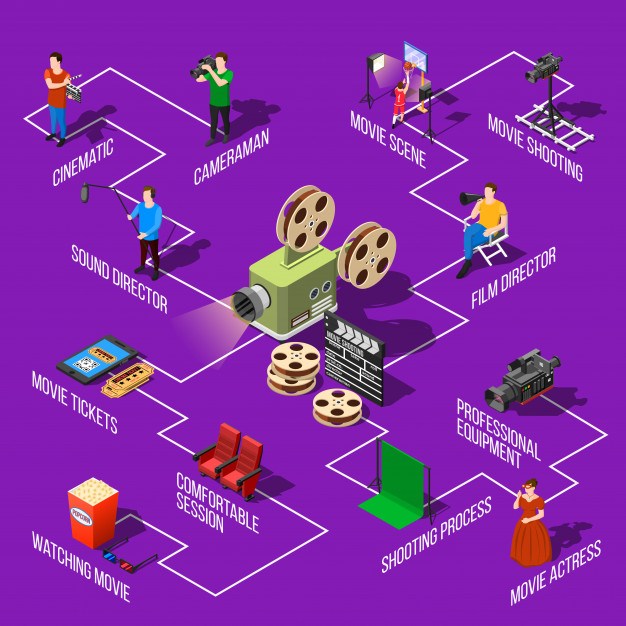 Camera Character Work Cinema Film Movie Isometric Team Video Job Stage Key Industry Play Group Screen Element Lighting Professional Production Device Motion Flowchart Collection Profession Set Shooting Equipment Operator Area Act Camcorder Making Chroma