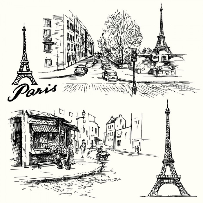 city cartoon Cityscape Eiffel Tower hand-painted Paris urban urban construction urban illustration urban landscape urban sketches