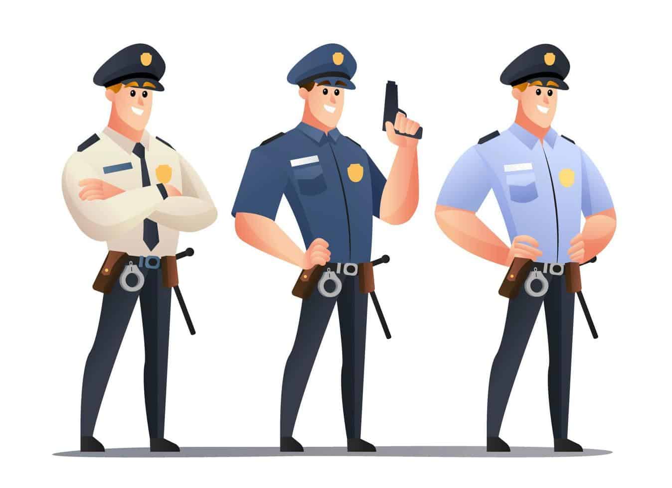 Policeman officer cartoon character set