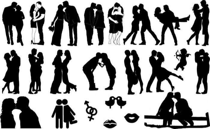 Romantic kisses silhouette