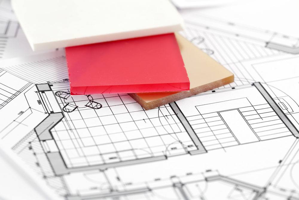 Sample cards and architectural drawings picture material