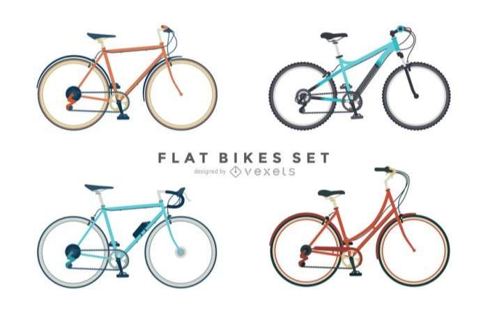 Set of 4 flat bicycle illustrations