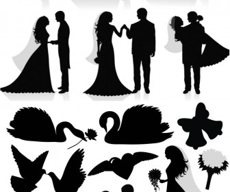 Attributes Balloon Bells Candle Card decoration Dove Flower Gift Heart Invitation Newlyweds Silhouette Swan Wedding