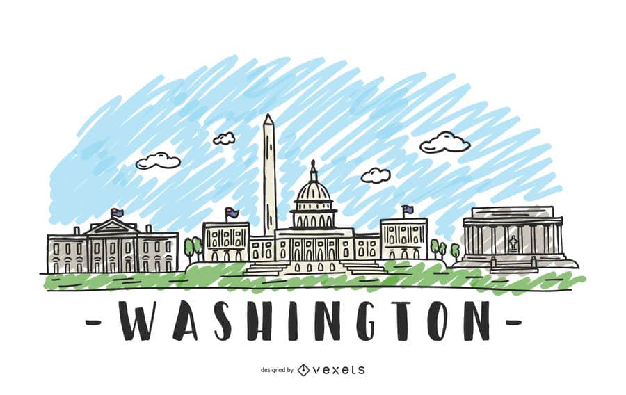 skyline washington usa america travel city building hand drawn drawing illustration white house