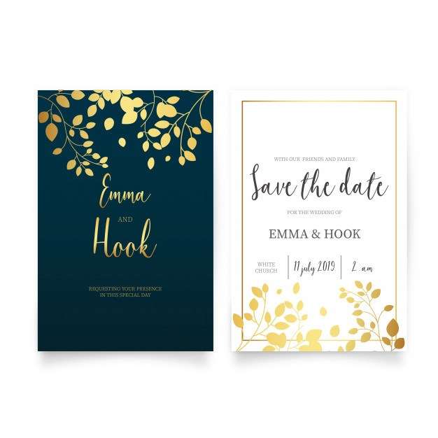 Elegant Wedding Invitation with Golden Leaves