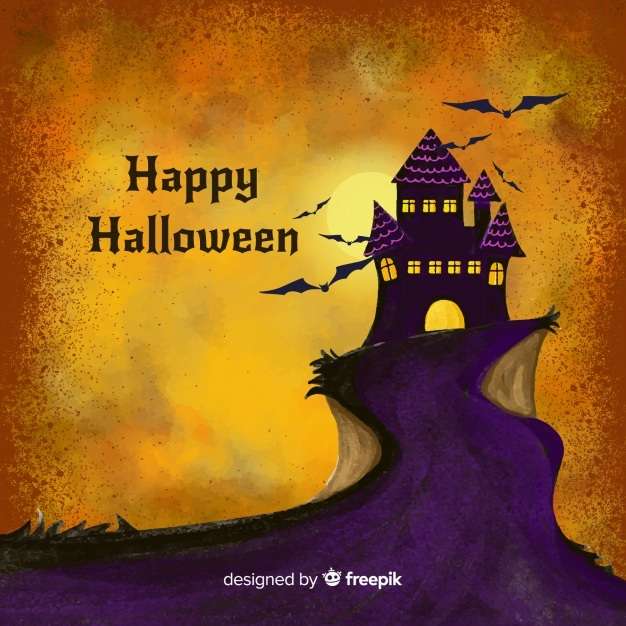 Halloween watercolor background with castle