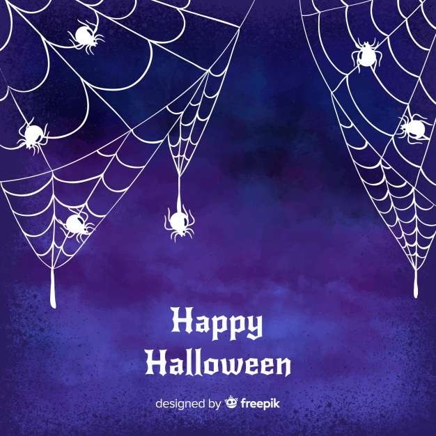 Halloween watercolor background with spider web
