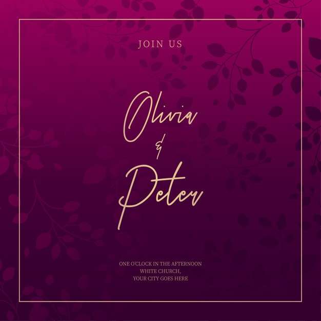 Purple Wedding Invitation with Ornamental Leaves