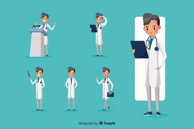 Nice doctor doing different actions