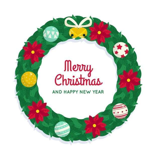 Flat christmas wreath with poinsettia flowers