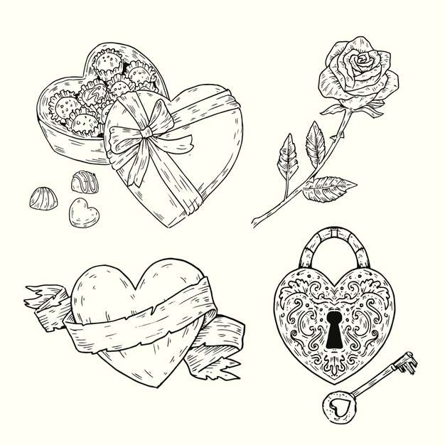Hand drawn valentine’s day element collection