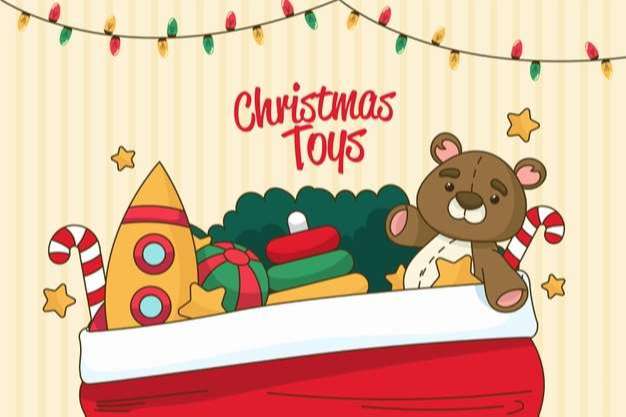 Hand drawn christmas toys background