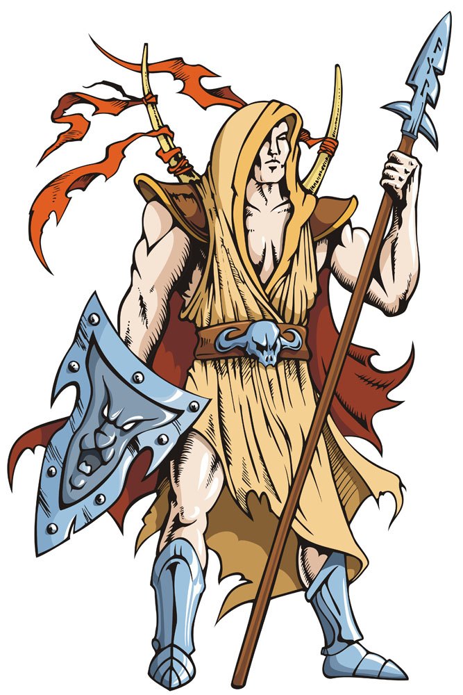 Cartoon warrior holding a spear shield vector
