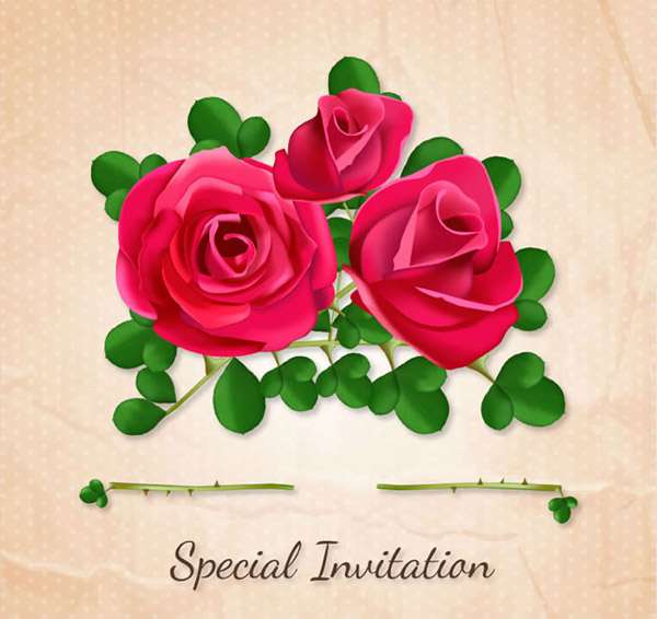 Red Rose invitation card vector
