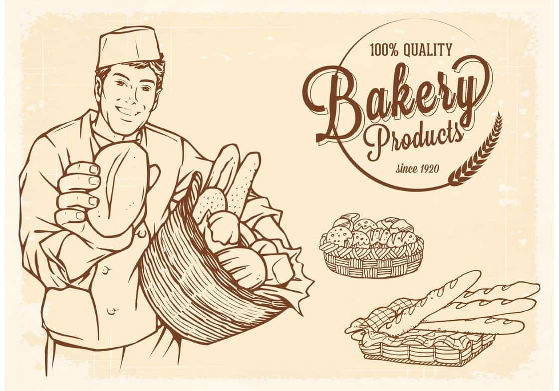 Drawn Old Basket With Bread
