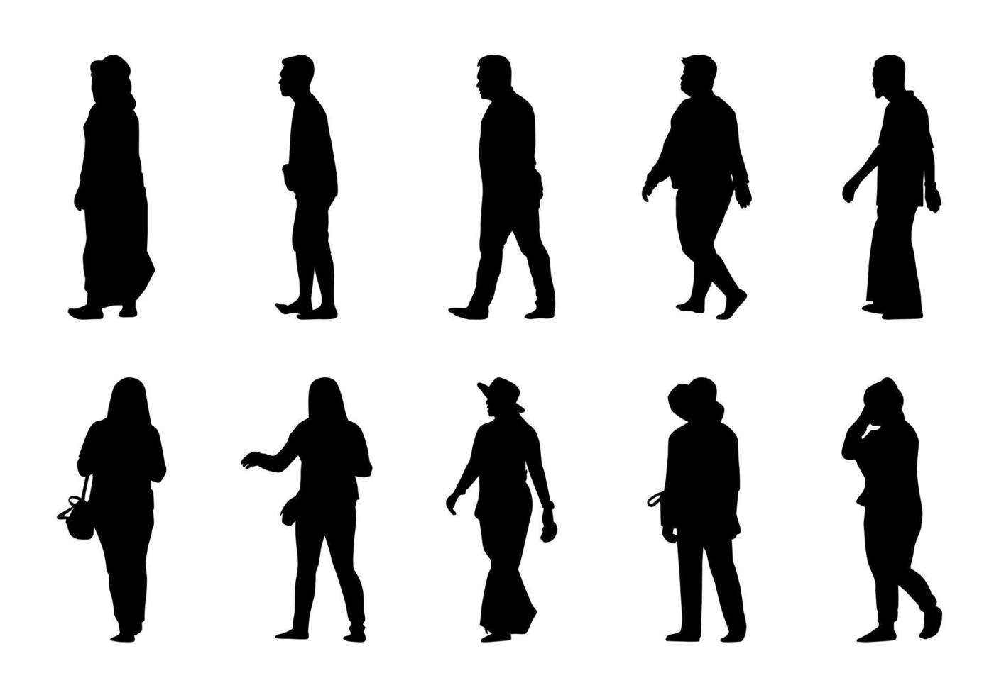 People silhouette walking set vector